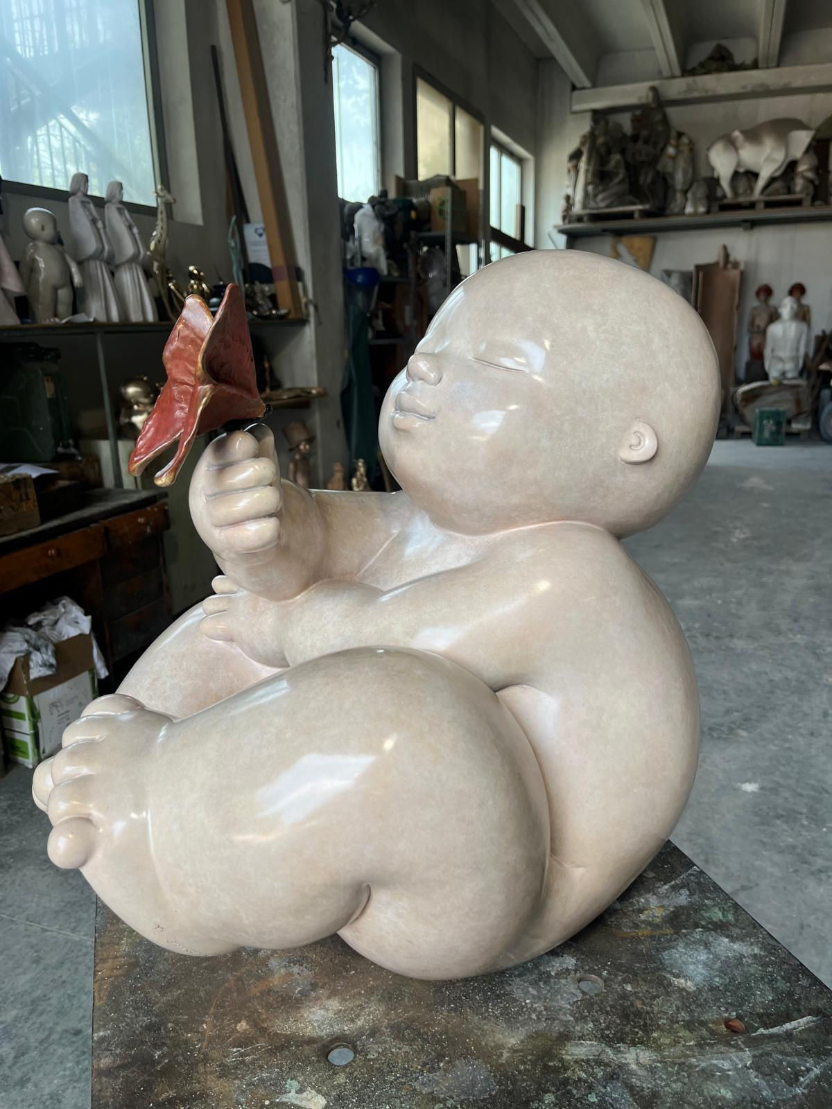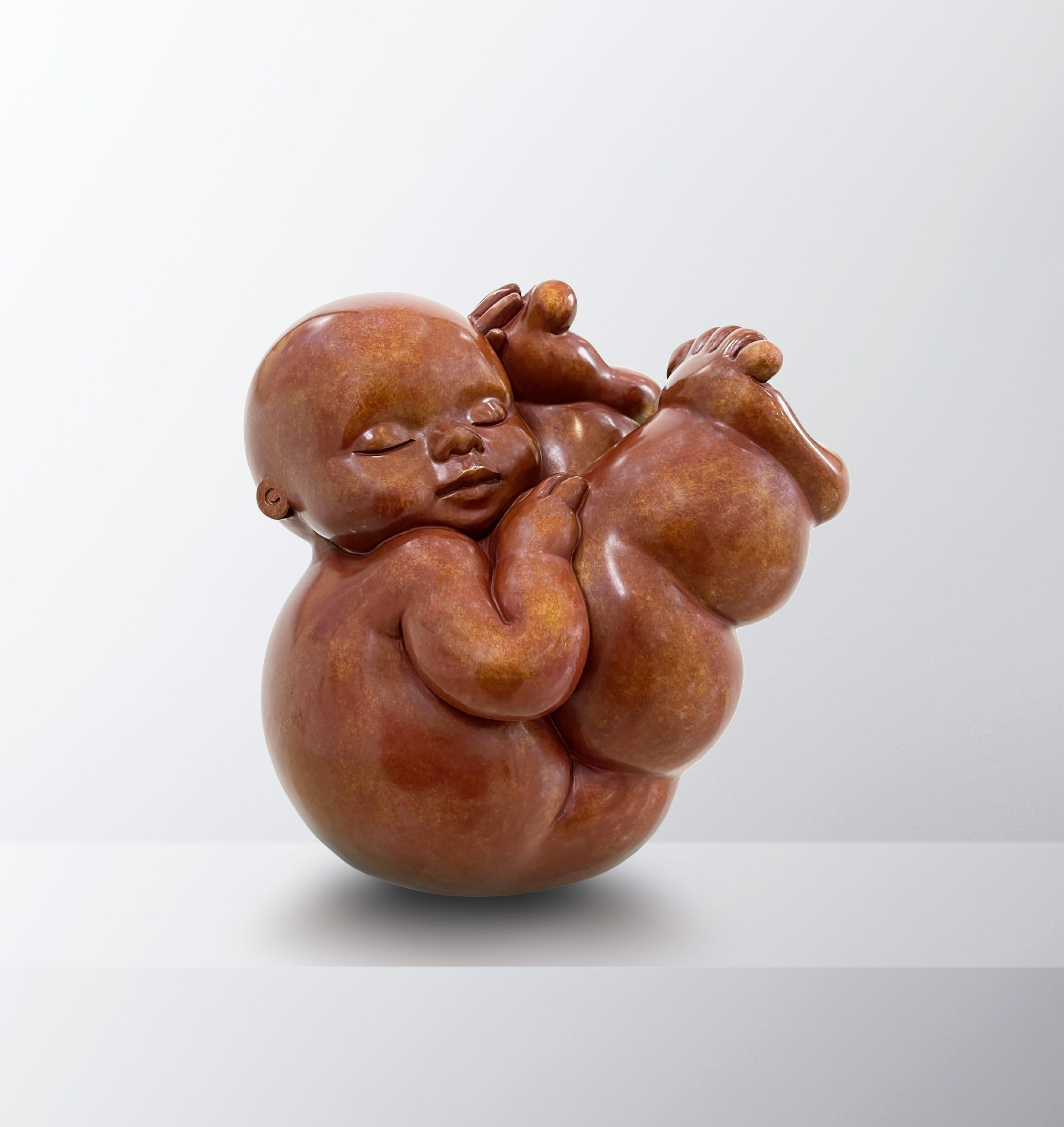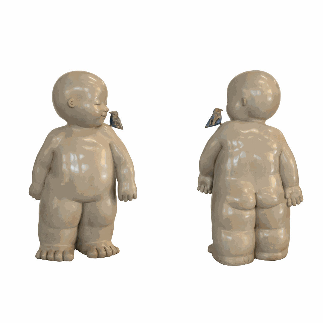 Mariela Garibay sculptures are instantly recognizable from their curvy, childlike forms. More imaginative than realistic, Garibay's sculptures have large heads, chubby limbs, closed eyes, and oversized feet. These curvy figures radiate innocence, interiority, and tenderness. Each pose, facial expression, and medium immortalizes a moment, an emotion, and sensation.